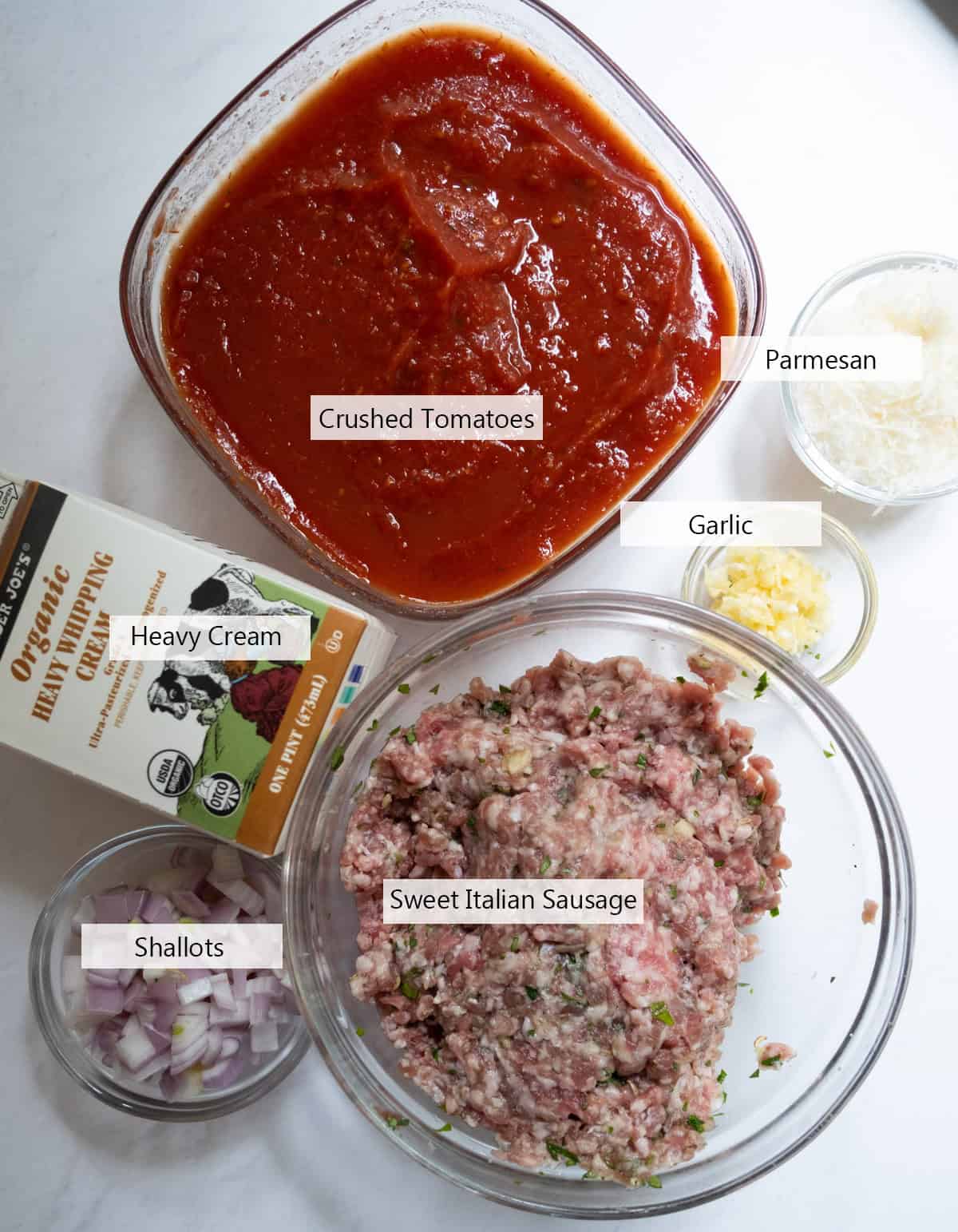 - 📋Main ingredients: Sweet Italian Sausage, Crushed Tomatoes, and Heavy Cream.